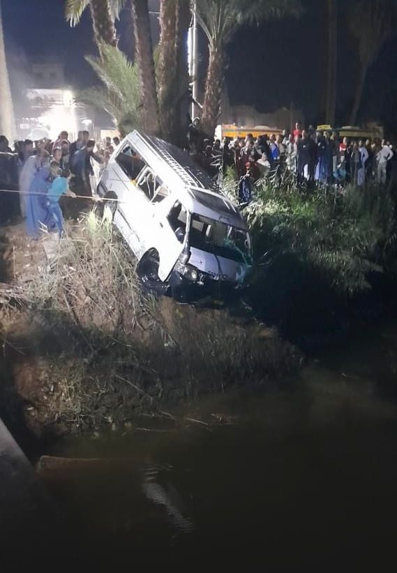 حادث انقلاب سيارة ميكروباص في ترعة نجع محمد السيد