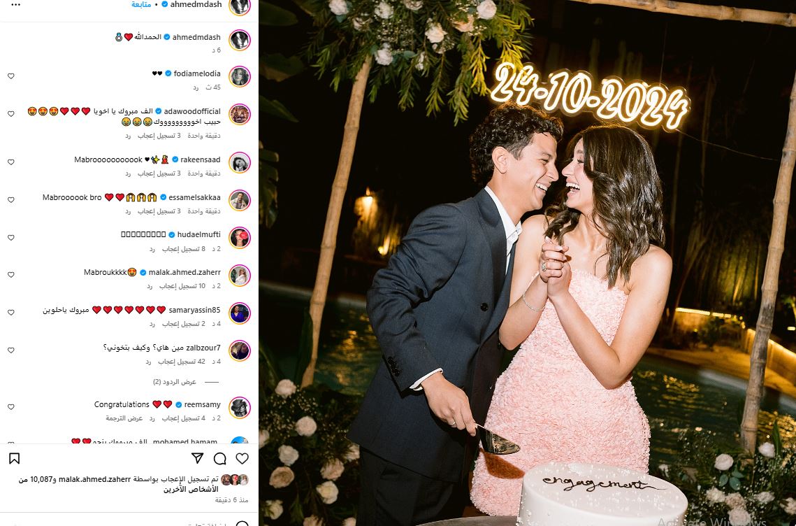 ونشر أحمد داش، صورة عبر حسابه على “ إنستجرام” من احتفاله بخطوبته أمس الأحد في أجواء عائلية تجمع بين الأصدقاء والأقارب، معلقا عليها قائلا: الحمدالله.