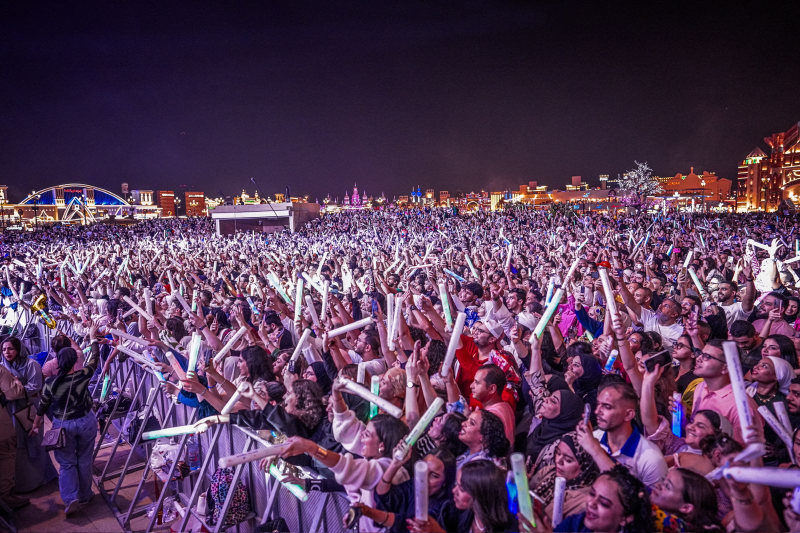 وشهدت حفلة نجم الجيل تامر حسني حضور جماهيري هو الأضخم والأكبر في تاريخ الإمارات خلال حفل افتتاح القرية العالمية بإمارة دبي، في سابقة هي الأولى من نوعها، ليثبت حجم شعبيته الكبيرة في الإمارات.