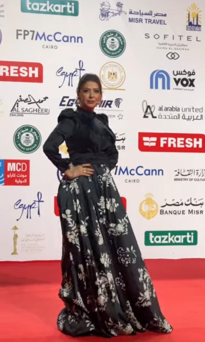 ظهرت أيضا الفنانة منال سلامة حفل افتتاح مهرجان القاهرة السينمائي في دورتة الـ 45، وظهرت بإطلالة مختلفة بفستان أسود طويل منقوش من الأسفل بورد أبيض وأكمام طويلة من الأسود.