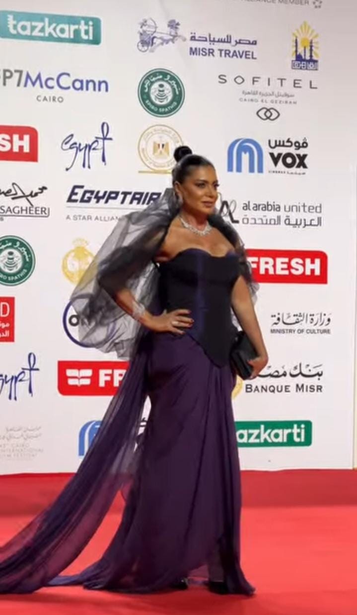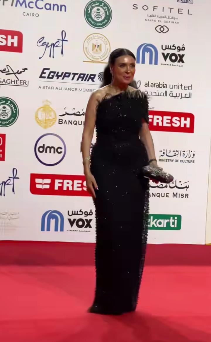 أطلت الراقصة والفنانة المصرية دينا بإطلالة مختلفة علي السجادة الحمراء في حفل افتتاح مهرجان القاهرة السينمائي، وظهرت ببفستان أسود طويل ومكشوف من الأعلي، ونسقتة مع حقيبة وإكسسورات من اللون الفضي.