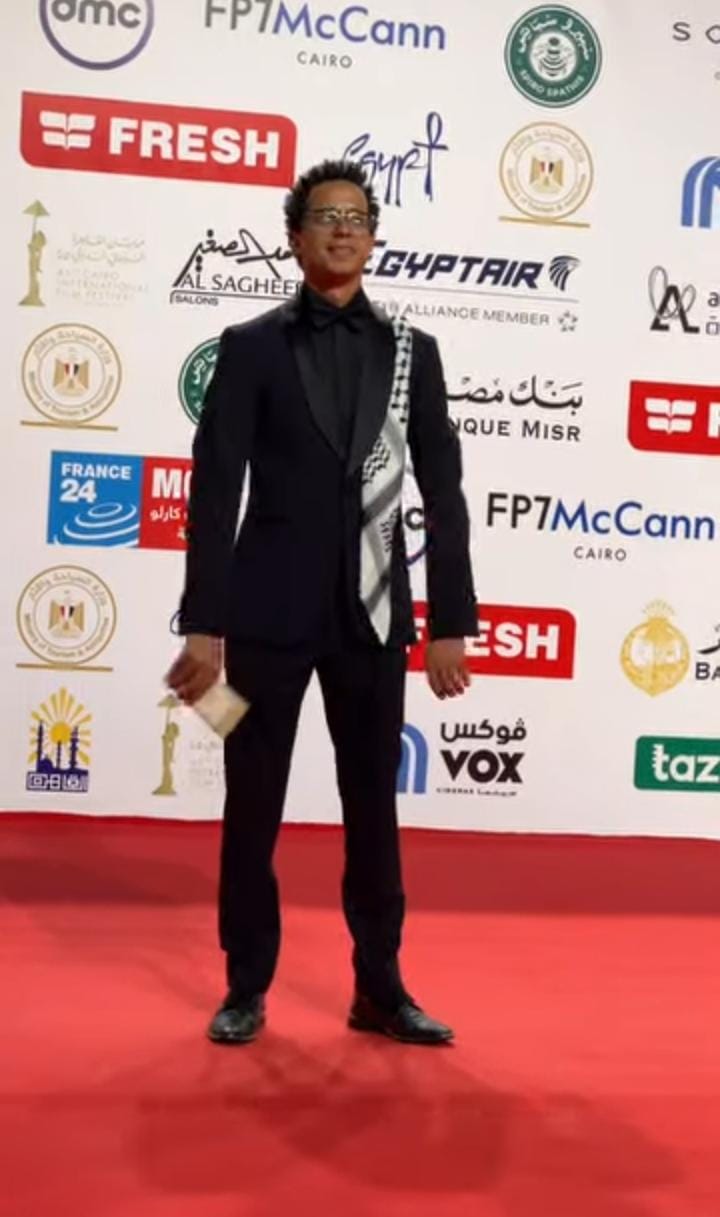كما حضر الفنان طه دسوقي حفل افتتاح مهرجان القاهرة السينمائي وظهر علي السجادة الحمراء مرتديا بدلة من اللون الأسود ووضع عليها شال من علم فلسطين.