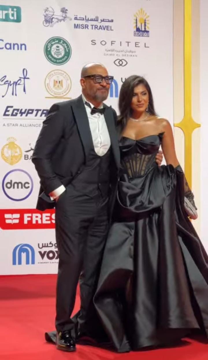 حرص الفنان ماجد المصري أن يكون من أول الحاضرين في حفل افتتاح مهرجان القاهرة السينمائي برفقة زوجتة، وظهرا بإطلاة جذابة وهو مرتديا بدلة من اللون الأسود، وظهرت زوجته بفستان طويل من اللون الأسود مكشوفا من الأعلي ونسقت علية شنطة من اللون الفضي.