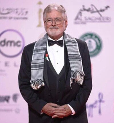 محمود قابيل بالشال الفلسطيني علي السجادة الحمراء في حفل افتتاح مهرجان القاهرة