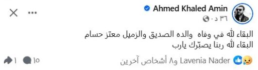 أعلن المخرج أحمد خالد أمين عن وفاة والدة المخرج معتز حسام، وذلك بمنشور له على صفحته الرسمية بموقع التواصل الاجتماعي فيس بوك" وكتب "البقاء لله في وفاة والد الصديق والزميل معتز حسام البقاء لله ربنا يصبّرك يارب".