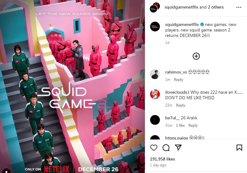 تواصل منصة نتفليكس الترويج والتشويق للمسلسل الكوري «لعبة الحبار- squid game» عبر صفحتها الرسمية "إنستجرام" .