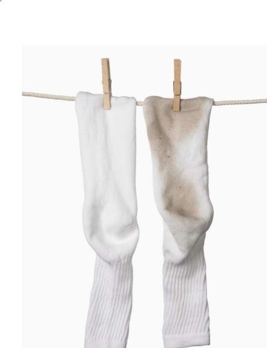 - اغسلي الجوارب البيضاء بالماء والصابون.