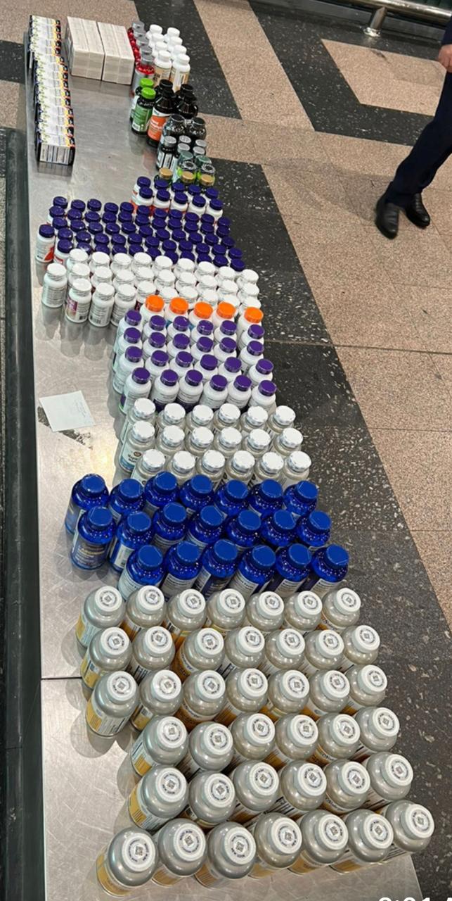 كما جاءت المضبوطات عبارة عن بضائع بمختلف أنواعها (تليفونات، نظارات ، مستلزمات وقساطر وأجهزة طبية ومستلزمات طب الاسنان، مستحضرات تجميل ، قطع غيار متنوعة ، مستلزمات التليفون المحمول، ادوية تخسيس واخري باهظة الثمن ، أدوية بيطرية ، مستلزمات شيش إلكترونية، عدسات لماكينات تصوير مشغولات ذهبية والماس وعملة اجنبية ومصرية.