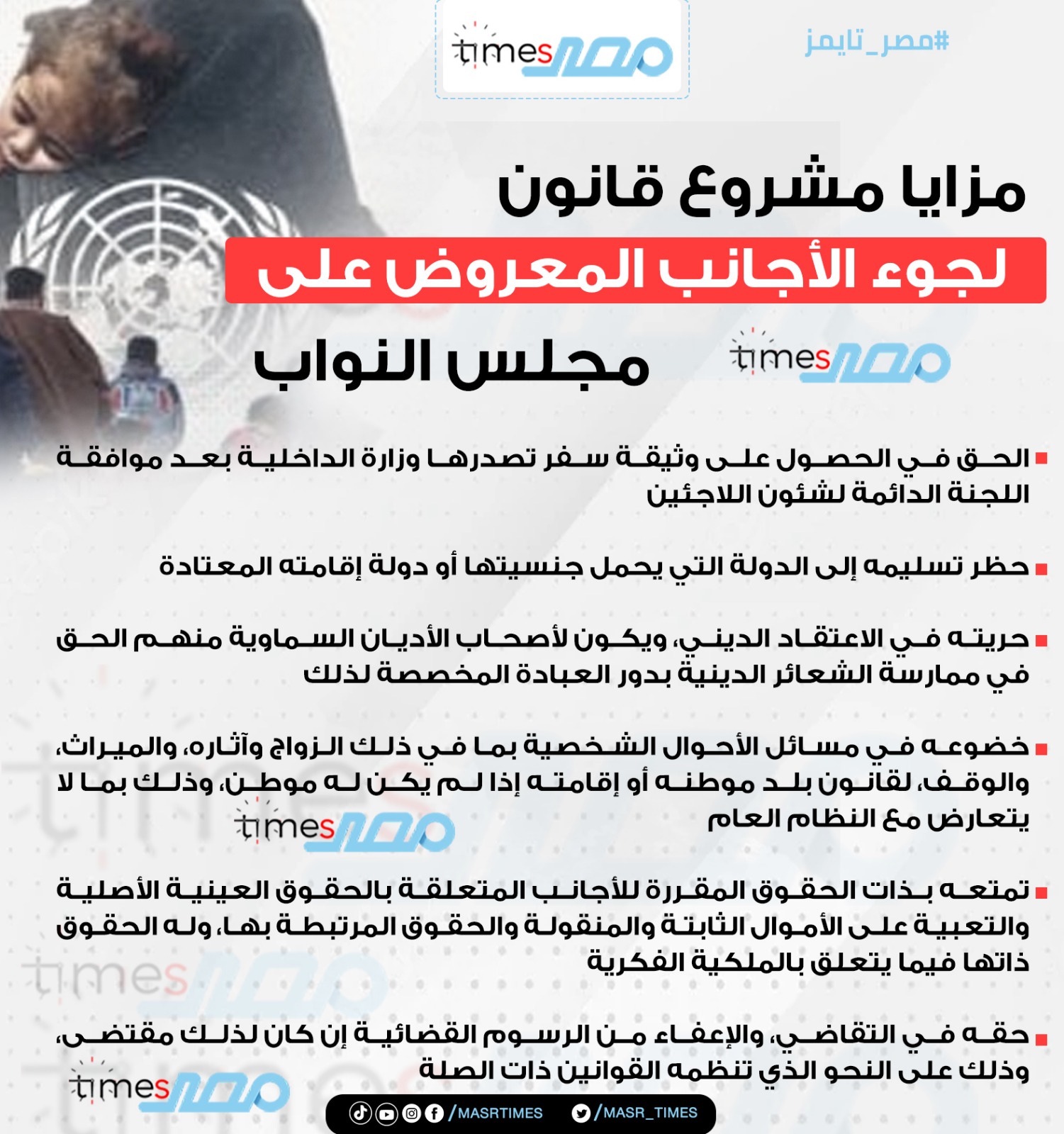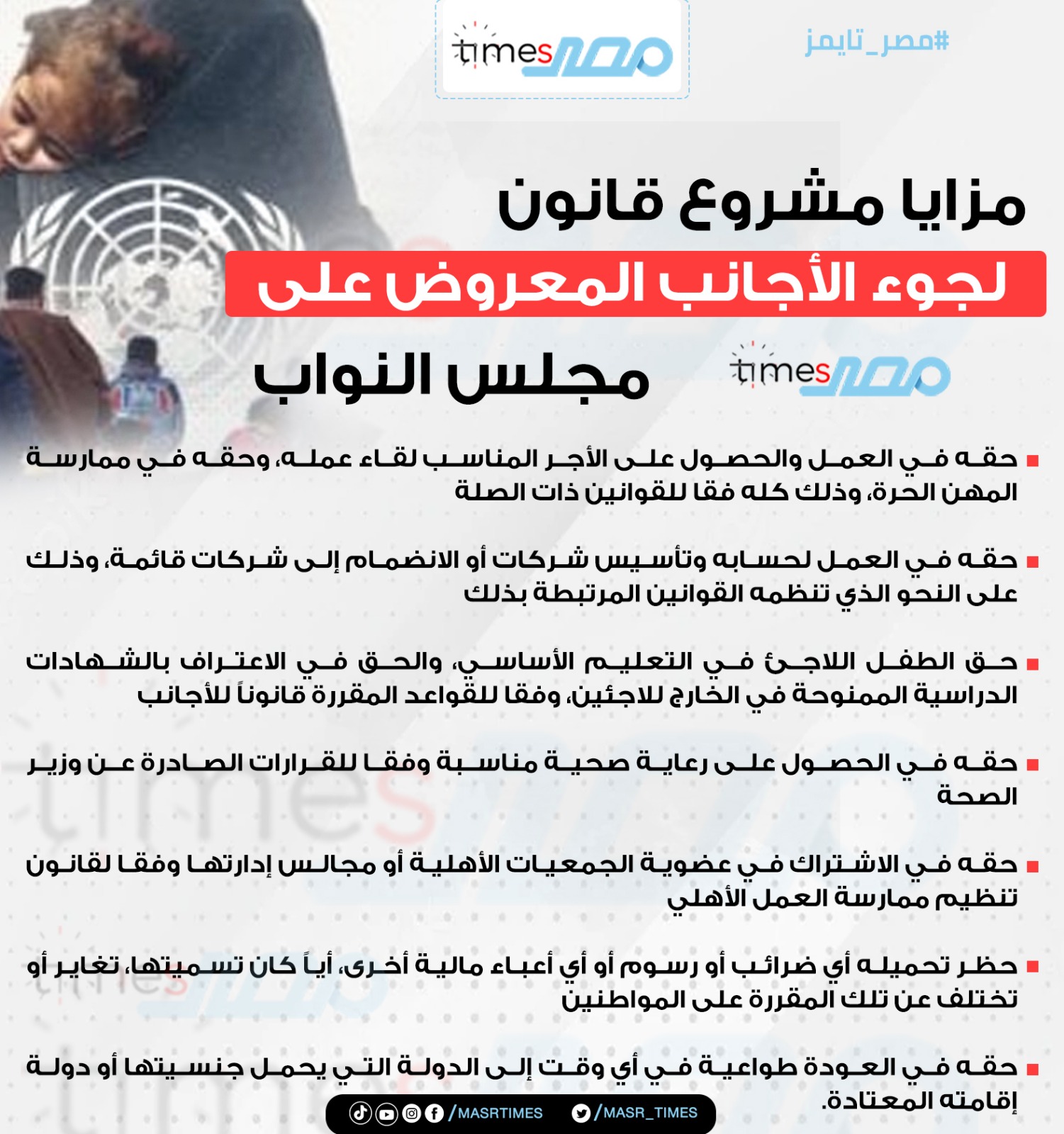 مزايا وحقوق اللاجئين وفقًا لقانون لجوء الأجانب المعروض أمام البرلمان (انفوجراف)