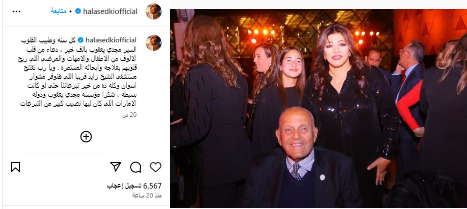 ونشرت هالة صدقي، صورة تجمعها بـ البروفيسور مجدي يعقوب عبر حسابها الرسمي على "إنستجرام"، وعلقت عليها قائلة: "كل سنه وطبيب القلوب السير مجدي يعقوب بألف خير، دعاء من قلب الالاف من الاطفال والامهات والمرضى اللي ريح قلوبهم بعلاجه وأبحاثه المستمرة".