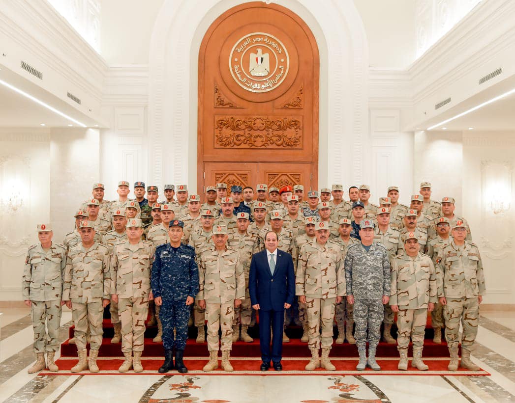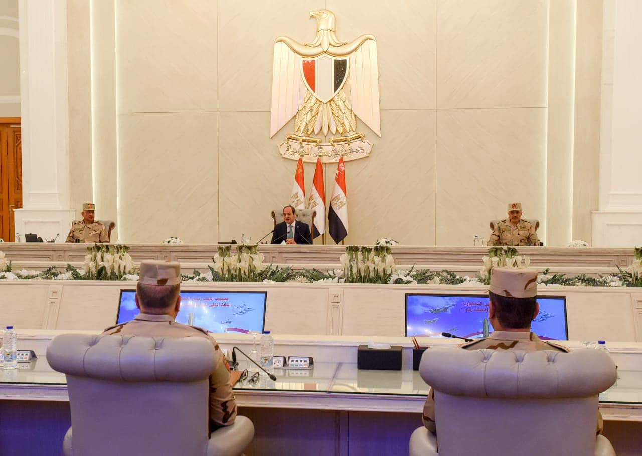 وشدد سيادته على أن الأحداث المتلاحقة والأوضاع المضطربة التي تشهدها المنطقة تؤكد أن خيارنا للسلام العادل والمستدام يفرض علينا الاستمرار في بناء قدرات القوى الشاملة لصون وحماية الوطن، مع الاستمرار في جهود التنمية الشاملة للدولة لتحقيق تطلعات أبناء الشعب المصري العظيم نحو مستقبل أفضل.