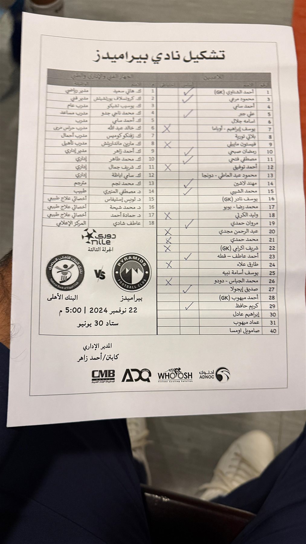 حراسة المرمى: أحمد الشناوي