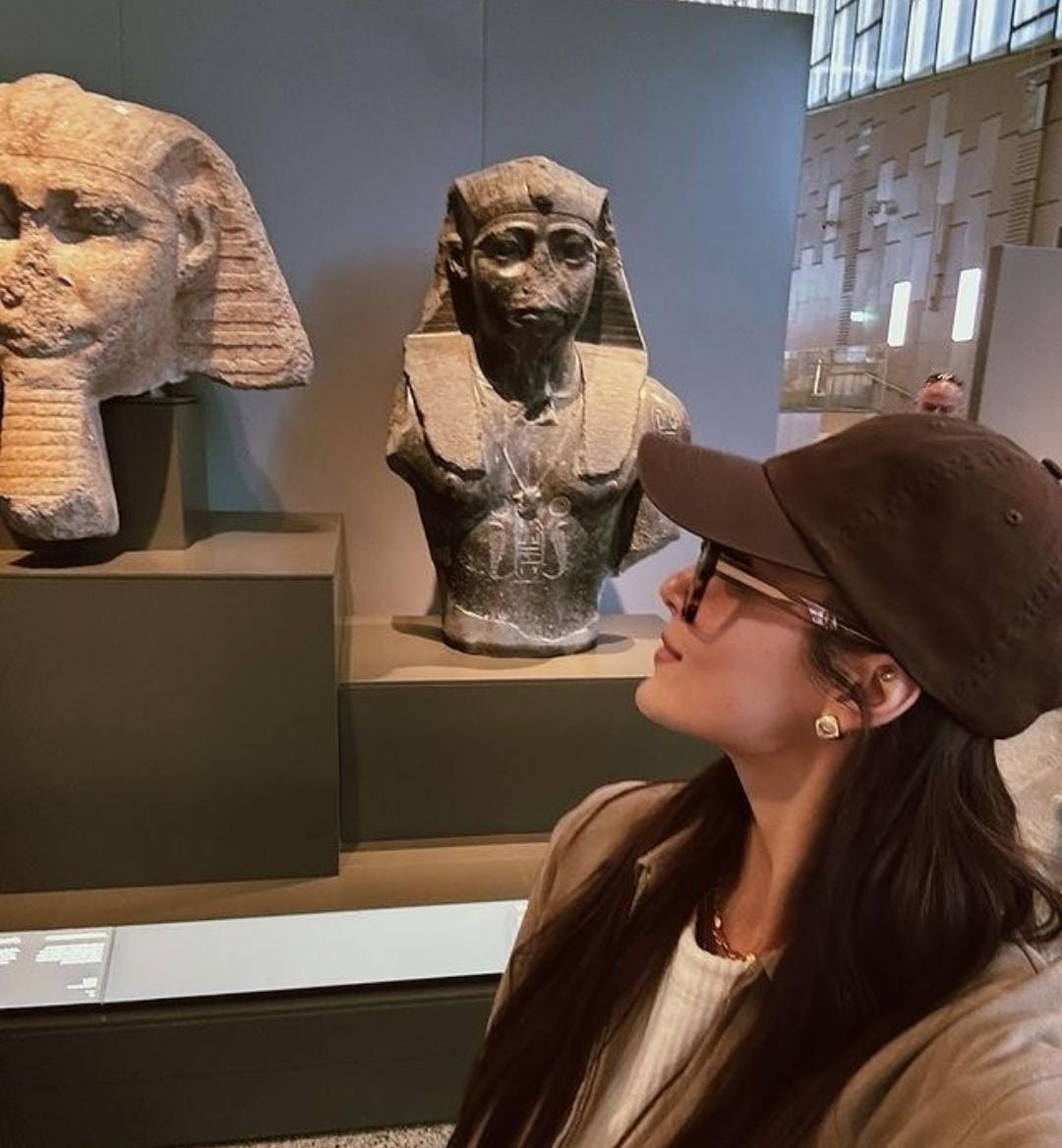 كانت معظم الصور التذكارية داخل المتحف المصري الكبير الموجود في محافظة الجيزة مع عدد من الآثار، إلى جانب صوراً أظهرت من خلالها أهرامات الجيزة الثلاثة والتي لاقت إعجاب مئات الألاف في أقل من ساعتين على نشرها خاصة على حسابها الرسمي على موقع "إنستجرام.
