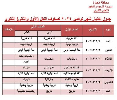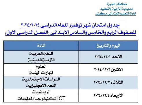 رسميًا بعد تعديلها.. جدول امتحانات شهر نوفمبر 2024 لجميع المراحل بالجيزة