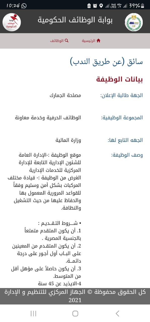 وأعلنت اليوم الاحد ٢٤ / ١١ / ٢٠٢٤ مصلحة الجمارك المصرية على موقع بوابة الوظائف الحكومية عن حاجاتها لندب ١٢٠ سائق للانضمام للعمل في مصلحة الجمارك المصرية، رابط الإعلان اضغط هنــا