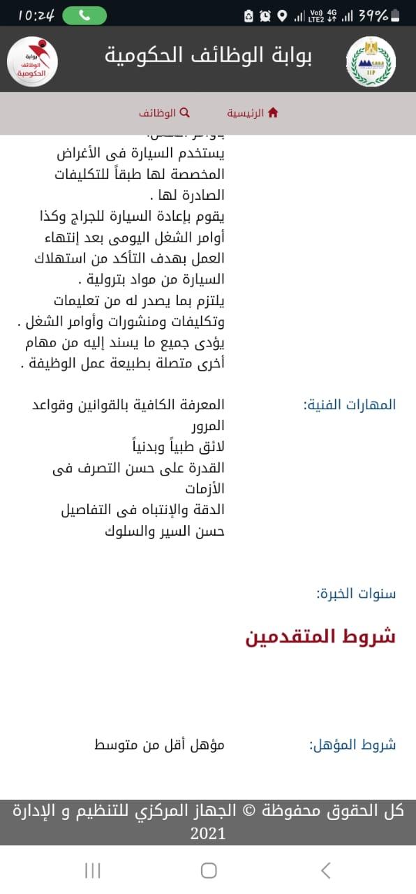 الغرض من الوظيفة :- قيادة مختلف المركبات بشكل أمن وسليم وفقاً للقواعد المرورية المعمول بها والحفاظ عليها من حيث التشغيل والنظافة.