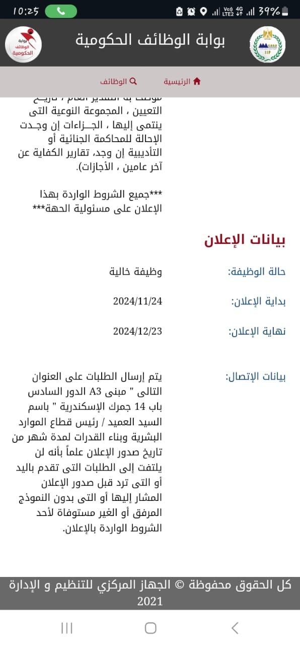 يتم إرسال الطلبات على العنوان التالى " مبنى A3 الدور السادس باب 14 جمرك الإسكندرية " باسم العميد رئيس قطاع الموارد البشرية وبناء القدرات لمدة شهر من تاريخ صدور الإعلان علماً بأنه لن يلتفت إلى الطلبات التى تقدم باليد أو التى ترد قبل صدور الإعلان المشار إليها أو التى بدون النموذج المرفق أو الغير مستوفاة لأحد الشروط الواردة بالإعلان.