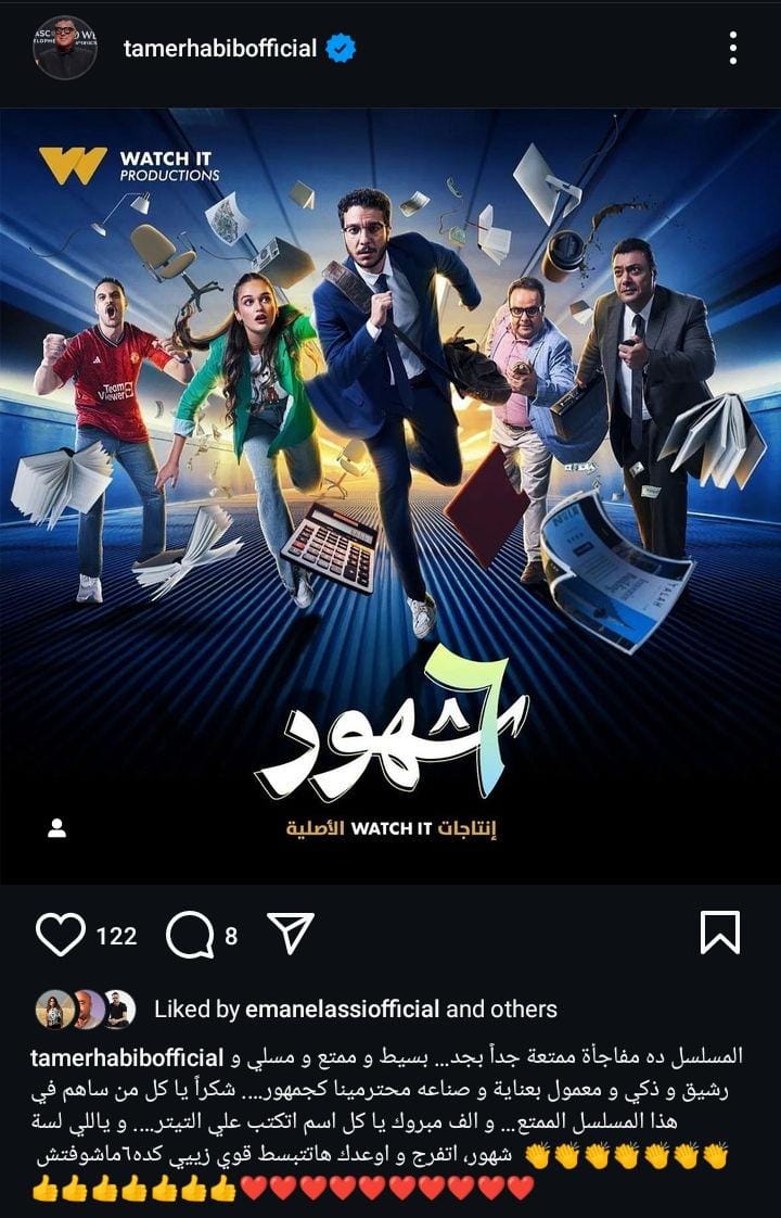 واختتم: "وياللي لسة ماشوفتش مسلسل 6 شهور، اتفرج وأوعدك هاتتبسك قوي زيي كده".