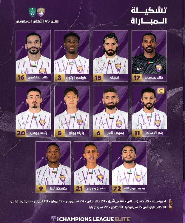 في قلب الدفاع: كوامي كواديو، بارك يونج وو، يحيى نادر، بندر الأحبابي.