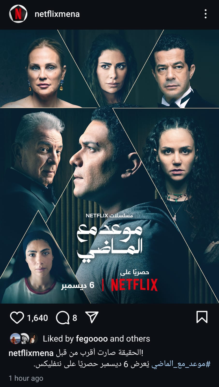 طرحت منصة نتفليكس منذ قليل البوستر الرسمي لمسلسل موعد مع الماضي الذي من المقرر أن يعرض في 6 ديسمبر المقبل.