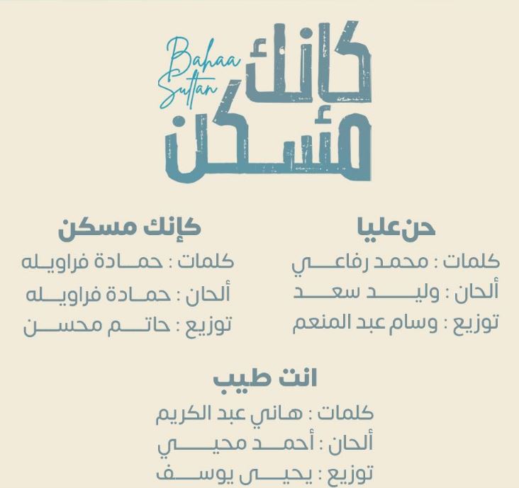 يستعد النجم بهاء سلطان لطرح ميني ألبوم جديد بالتعاون مع شركة "روتانا"، يحمل اسم "كأنك مسكن".