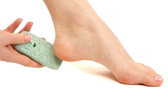 استخدمى حجر الخفاف الطبيعي عالي الجودة للحصول على أفضل النتائج. قومى بنقع قدميك فى الماء الدافئ مع الصابون، وافركي قدميك بالحجر بلطف واشطفها، ثم قومى بتنشيفها جيدا قبل وضع كريم مرطب وارتداء الجوارب القطنية.