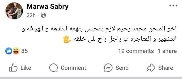 و كتب عدد من النجوم عبر صفحاتهم الشخصية عبارات ضد شقيق محمد رحيم حيث كتبت الإعلامية مروة صبري " أخو الملحن محمد رحيم لازم يحاكم بتهمة التشهير بـ راجل راح للى خلقه".