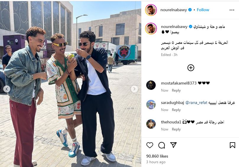 شارك النجم نور النبوي متابعيه صورا مع أبطال فيلم الحريفة 2 والذي من المقرر عرضه يوم 4 ديسمبر في سينمات مصر، و5 ديسمبر في الوطن العربي".