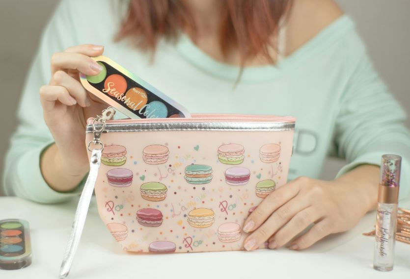 حقيبة صغيرة لحفظ مستحضرات التجميل الخاصة بها في حقيبتها الأساسية.