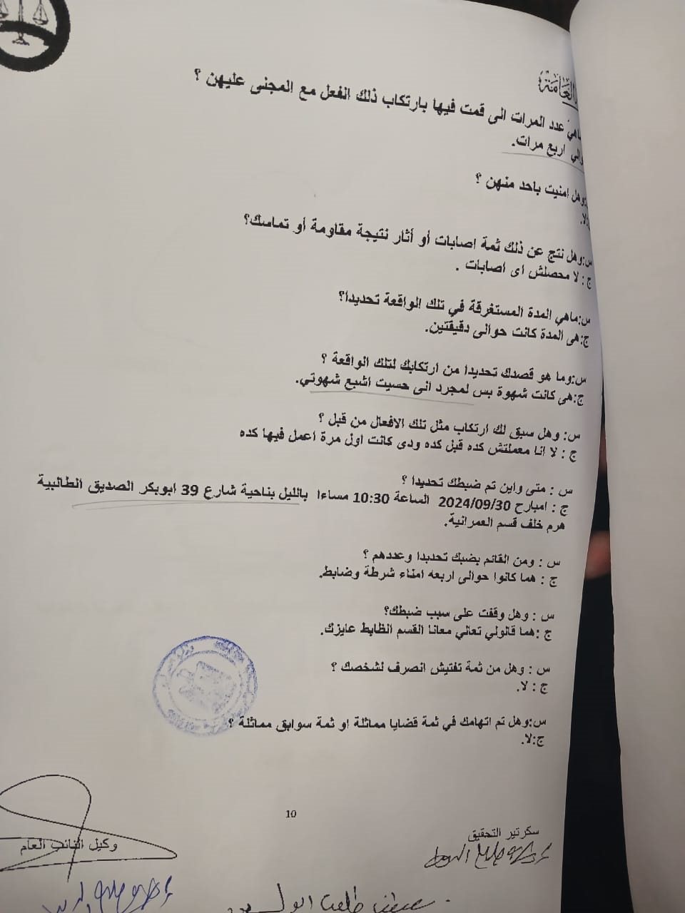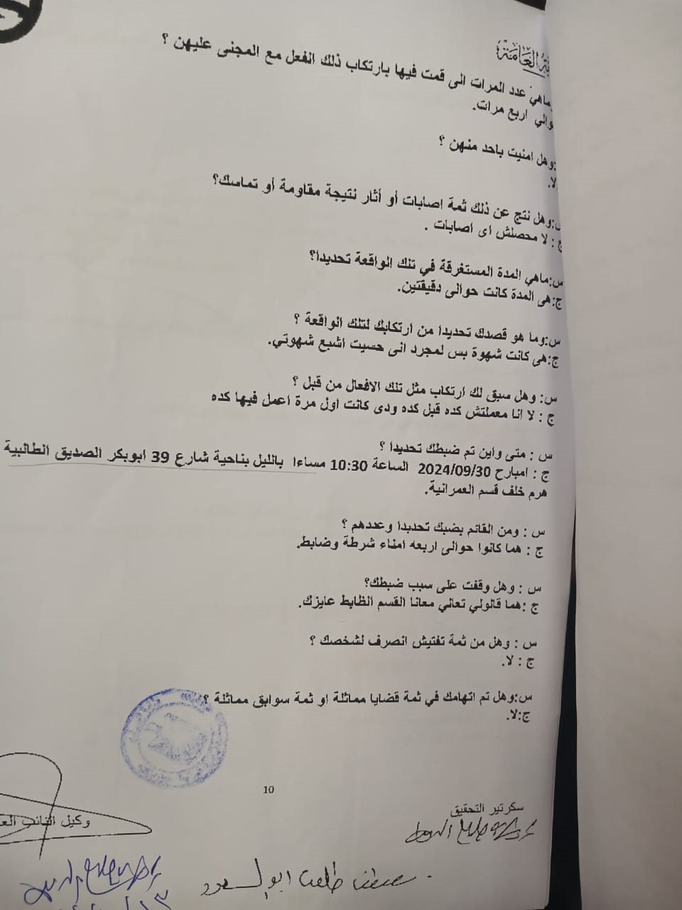 ج انا عرفت يوم الأحد يوم 2024/09/29 الساعة 02:00 مساءا. وروحت المدرسة يوم الاثنين 2024/09/30 الساعة 11:00 صباحا بناحية شارع المستشفي بجوار قسم العمرانية الجيزة القسم بعد ما خلص في المدرسة.