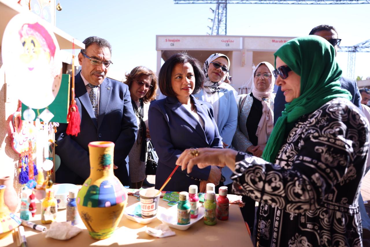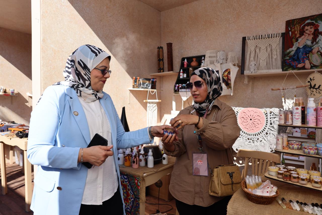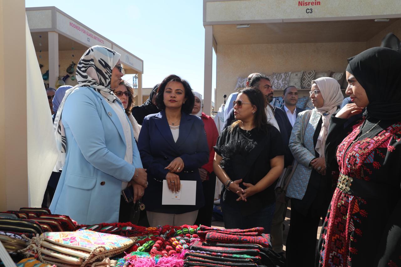 وكان فى استقبالهما الأستاذة نوران الجميعي مسؤولة المعارض و التسويق بالإدارة العامة لتنمية مهارات المرأة التى عرضت شرحا مفصلا لجميع المنتجات المعروضة.