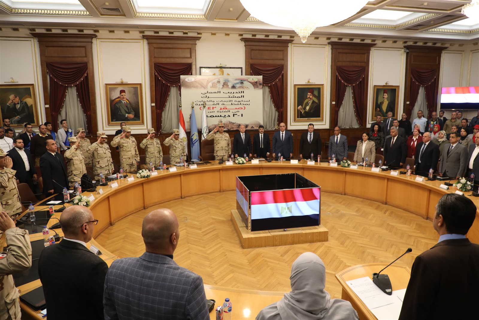 وقد قام العميد شريف حسنين الشندى المستشار العسكري لمحافظة القاهرة بشرح الموقف الذي سيتم تدريب الجهاز التنفيذي عليه بهدف تدريب الأجهزة التنفيذية بالمحافظة على أسلوب مجابهة الأزمات والكوارث بإمكانيات المحافظة والتنسيق مع المحافظات المجاورة باستغلال 25% من إمكانيتها حيث تم تحديد الخسائر التي حدثت جراء الموقف في كل حي والمهام المطلوب تنفيذها منهم وكيفية التعامل واتخاذ الإجراءات التي من شأنها تقليل المخاطر والخسائر قدر المستطاع .
