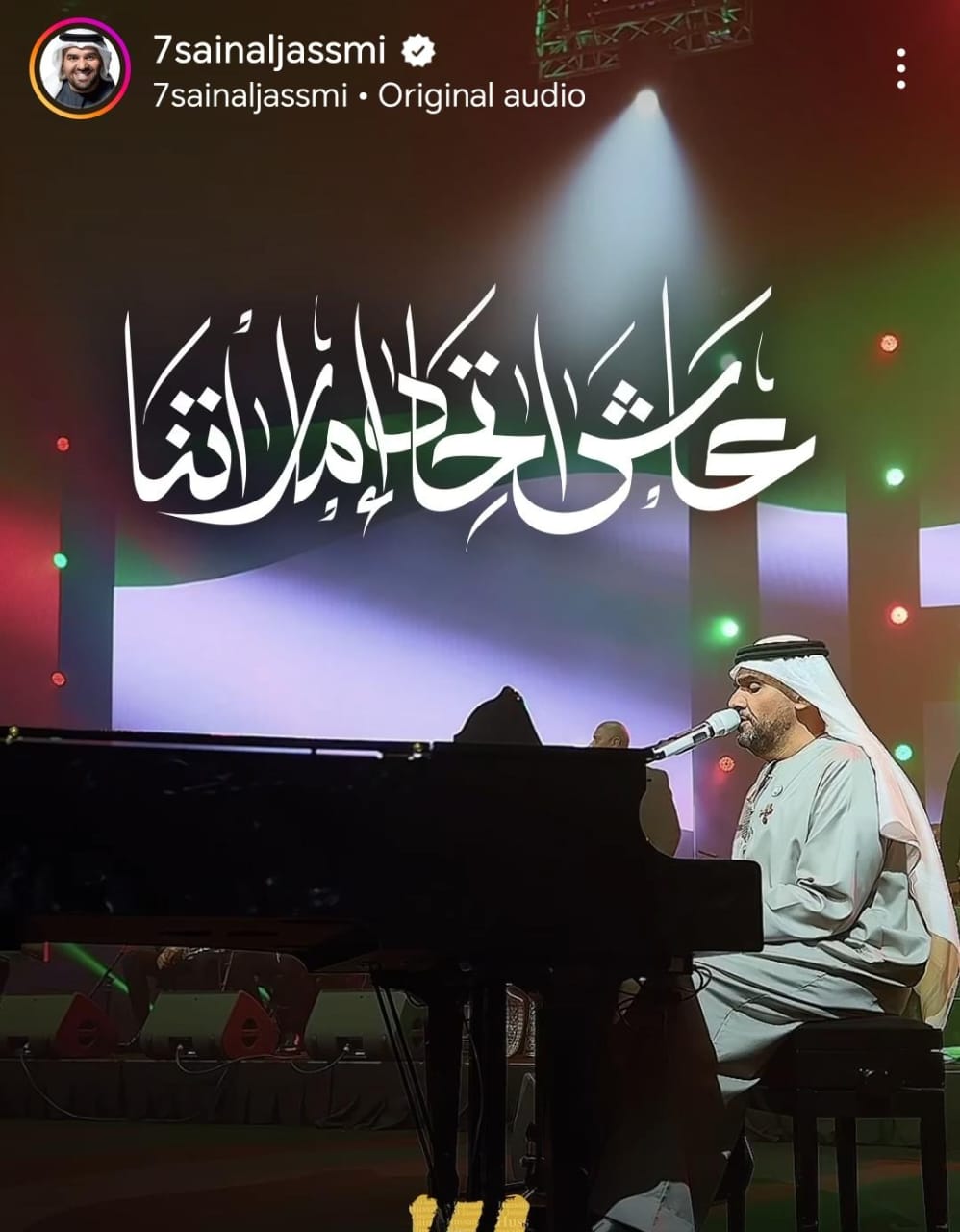 فيما شارك النجم الإماراتي حسين الجسمي مقطع فيديو عبر حسابه الرسمي على "إنستجرام" من إحدى حفلاته السابقة، أثناء تقديمه للنشيد الوطني الإماراتي "عيشي بلادي...عاش اتحاد اماراتنا"، وكتب منشوراً معلقاً عليه "حصنتك باسم الله يا وطن".