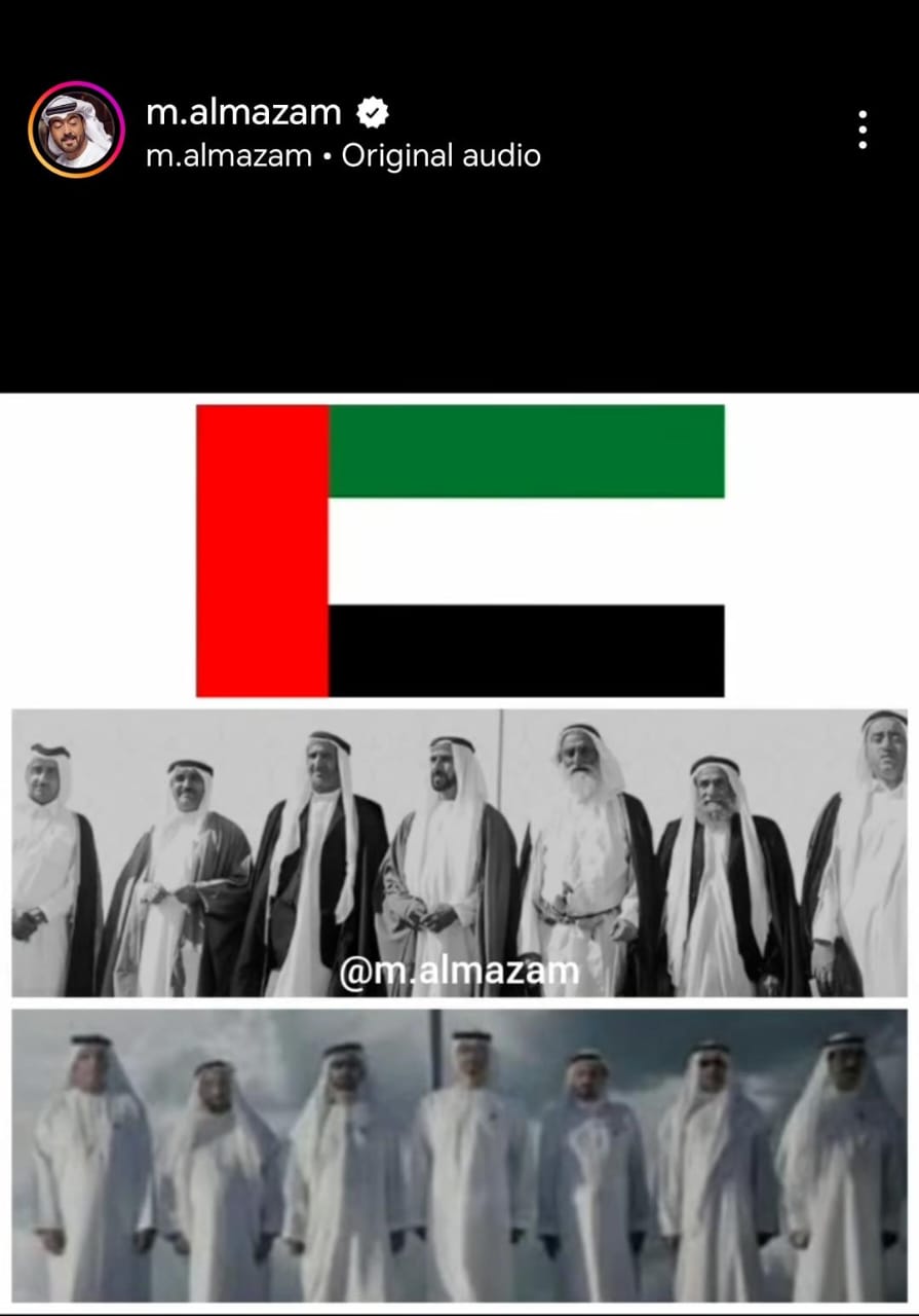 فيما نشرت الممثلة والمنتجة المغربية المقيمة في الإمارات من عشر سنوات ميساء مغربي عبر منصة "X"، مقطع فيديو يجمع حكام دولة الإمارات وكتبت تغريدة معلقة عليه قائلة: "كل عام و الإمارات الحبيبة أرض التسامح والتعايش بخير و نمو و رخاء.. اللهم احفظها قيادةً و حكومةً وشعبًا وادم عليها نعمة الأمن والأمان"