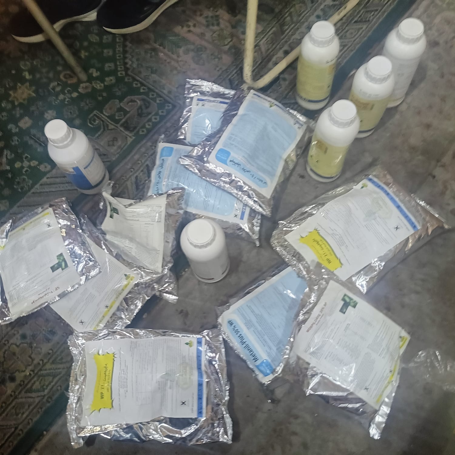 وتم ضبط كمية من الأسلحة البيضاء، وغيرها من الاسلحة غير المشروعة، وعثر على كمية من الأدوية البيطرية الممنوعة.