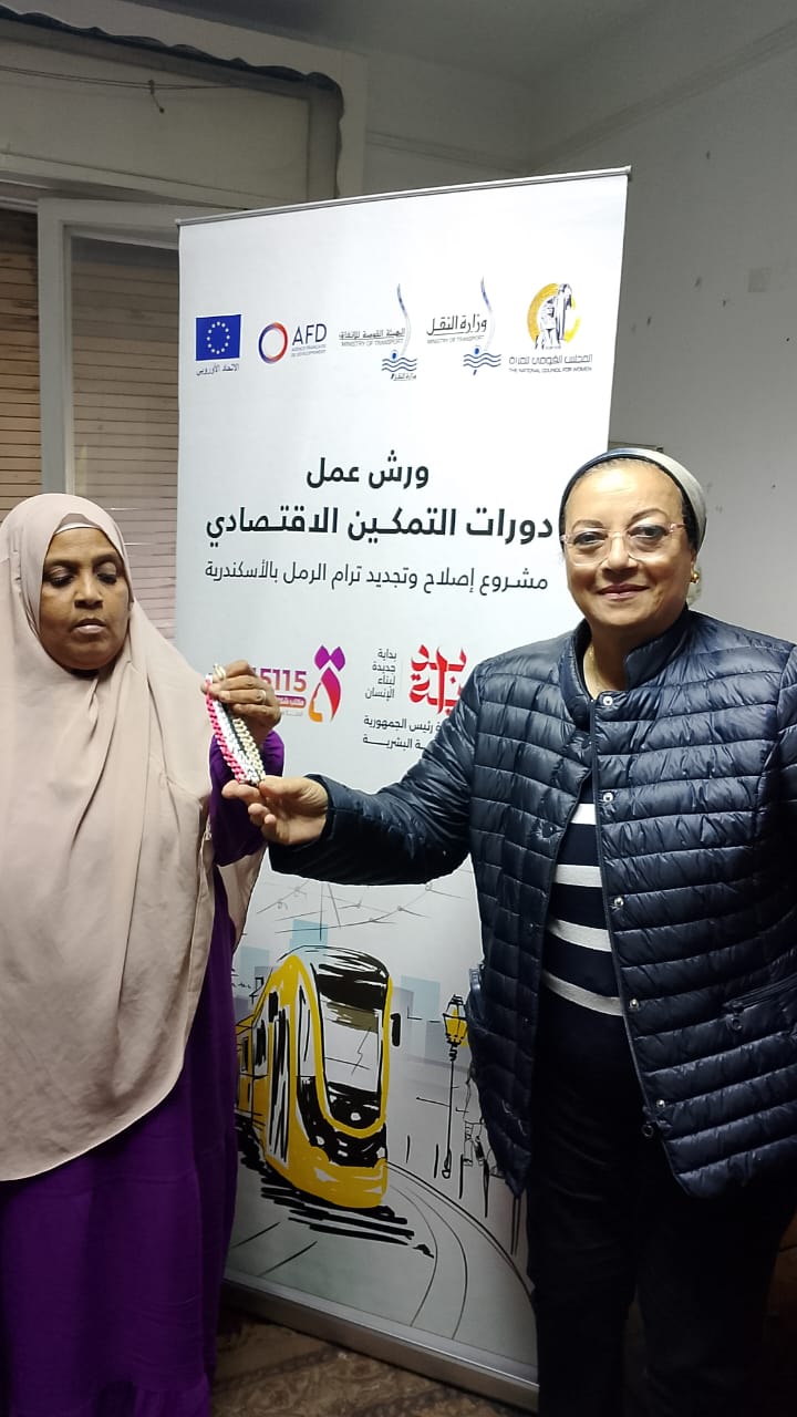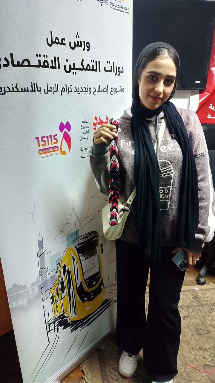 نظم فرع المجلس القومي للمرأة بمحافظة الإسكندرية ورشة للتدريب على "فنون المكرمية" ، وذلك في إطار مشروع إعادة تأهيل ترام الرمل بالإسكندرية والذي يقوم المجلس القومي للمرأة بتنفيذه بالتعاون بين الهيئة القومية للأنفاق ووزارة النقل والوكالة الفرنسية للتنمية بالشراكة مع الإتحاد الأوروبي و ضمن تحقيق المساواة بين الجنسين في قطاع النقل وفي إطار برنامج التمكين الاقتصادي للمرأة بمحافظة الإسكندرية.