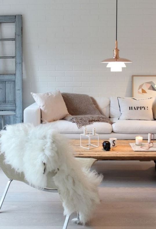 تغيير الخامات التي تغطي الأثاث يمكن أن يحدث فرقًا كبيرًا،غطّي الأرائك ببطانيات سميكة من الصوف أو الفرو الصناعي.