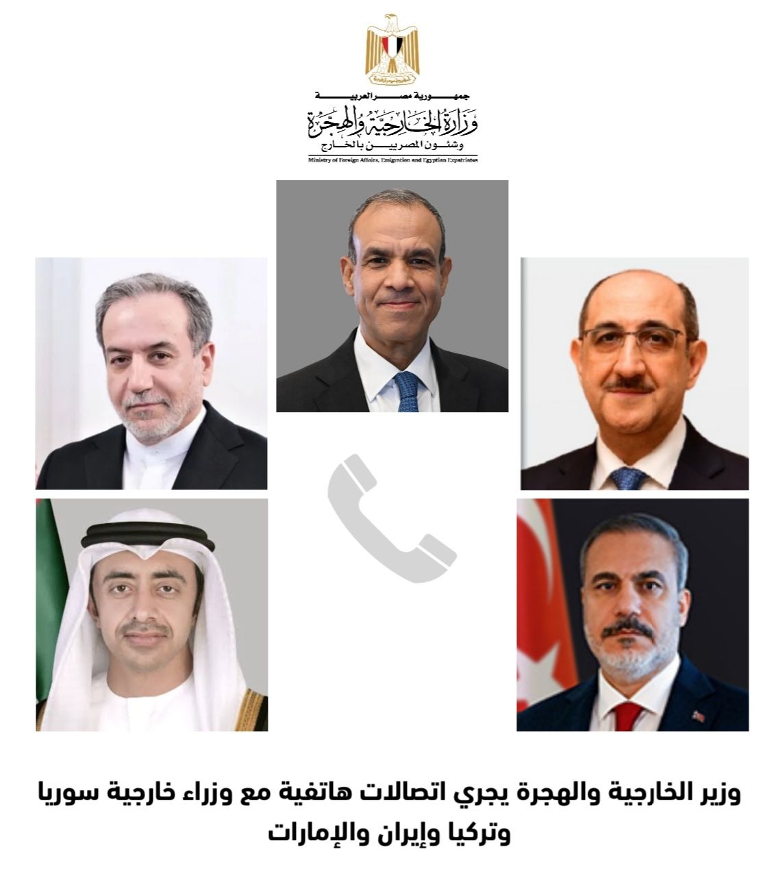 بدر عبد العاطي يجري سلسلة من الاتصالات الهاتفية مع وزراء خارجية الإمارات وسوريا وإيران وتركيا