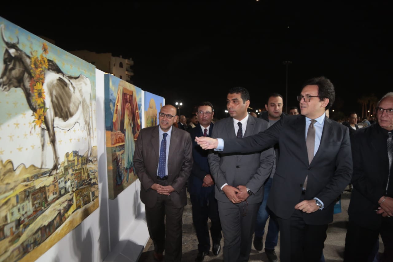 كما تفقد وزير الثقافة، معرض لوحات فنية للإدارة العامة للفنون التشكيلية، نتاج ملتقى الأقصر، الذي أقيم بالأقصر على مدار ثلاث سنوات ضمن فعاليات مهرجان التحطيب، بقرية حسن فتحي، واختصت لوحاته بلعبة التحطيب، وأشهر معالم محافظة الأقصر، حيث أشاد وزير الثقافة بالمستوى الإبداعي المتميز لأعمال المعرض.