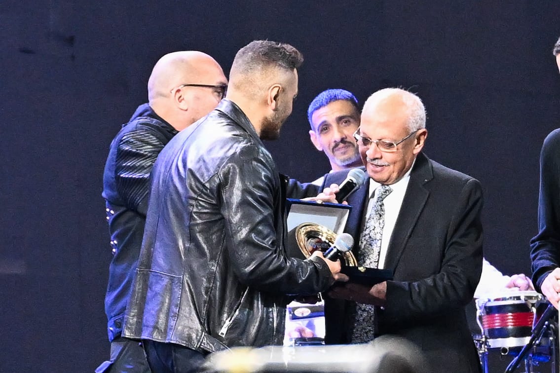 وحرص د.احمد حمد نائب رئيس الجامعة علي إهداء تامر حسني درع تكريم عن مشواره الفني المتميز واحتفائه بصديقه الراحل محمد رحيم.