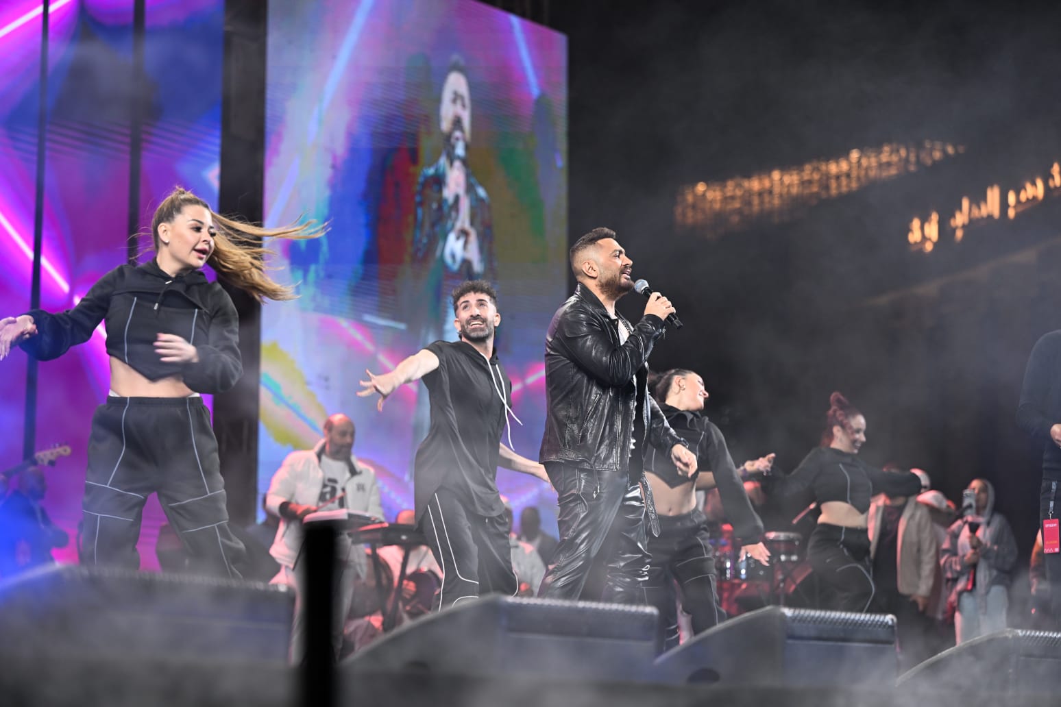 واشعل تامر حسني الحفل بعدد كبير من أغانيه الرومانسية والاستعراضية المبهرة علي مدي أكثر من ساعة ونص الساعة وسط أجواء لايف عالمية وفى ختام فقرته وجه كلمة شكر للجمهور ولكل من ساهم في إنجاح الحفل المنظم ياسر الحريري ومصمم المسرح تامر فوزي ومهندس الاضاءة وليد الحريري وfire show الفنان أحمد عصام .