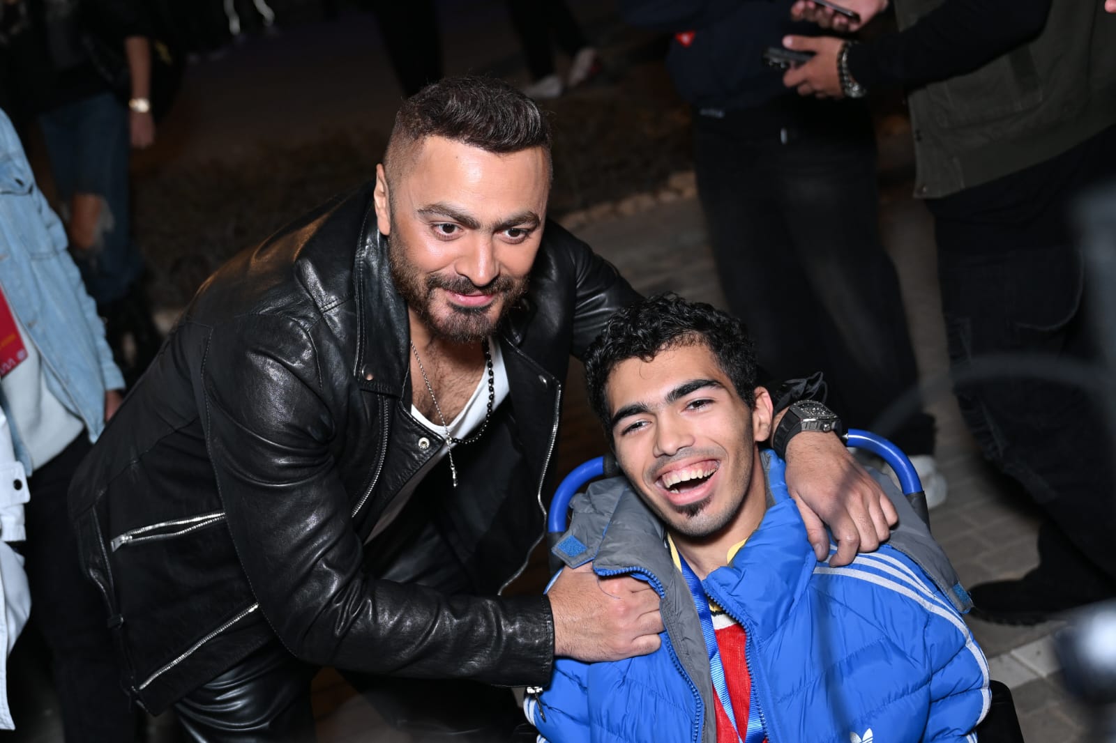 حضر تامر حسني بصحبة مدير أعماله تامر يحي وكان في استقبالهما منظم الحفل ياسر الحريري وريهام سعيد من الجامعة "المعلوماتية" وقبيل صعوده علي خشبة المسرح حرص علي التقاط صورة مع احد معجبيه من ذوي القدرات الخاصة.