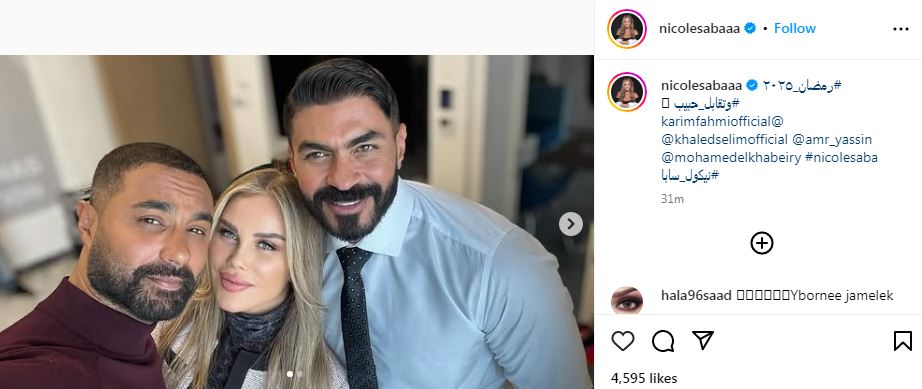 ونشرت نيكول الصور برفقة كريم فهمي وخالد سليم وعمرو محمود ياسين وعلقت علي الصور" رمضان٢٠٢٥ وتقابل حبيب".