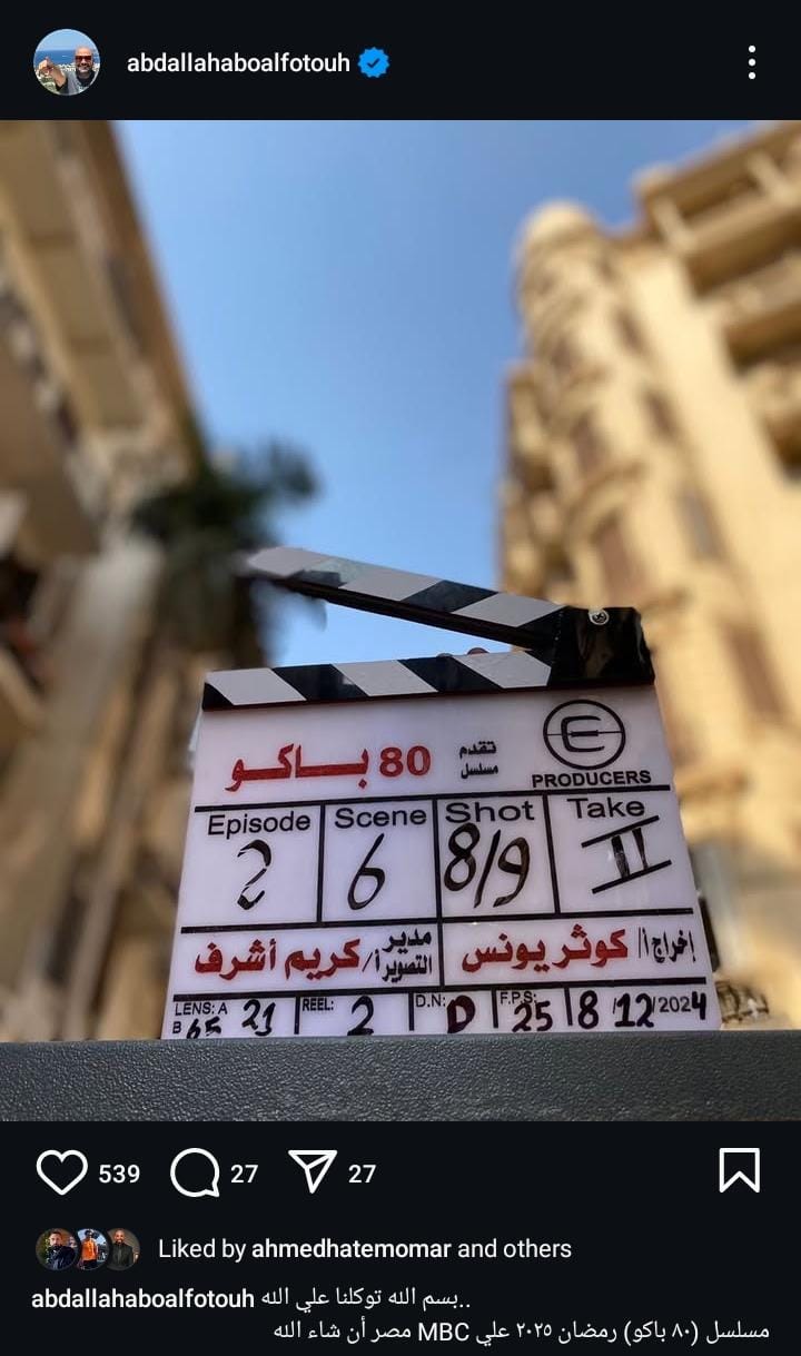 وأعلن منتج العمل عبد الله أبو الفتوح عن انطلاق تصوير مسلسل 80 باكو، وذلك من خلال حسابة الرسمي علي موقع تبادل الصور والفديوهات القصيرة “إنستجرام” ناشرا صورة كلاكيت المسلسل ومعلقا: “ بسم الله توكلنا علي الله.. مسلسل 80 باكو رمضان 2025 علي MBC إن شاء الله”.