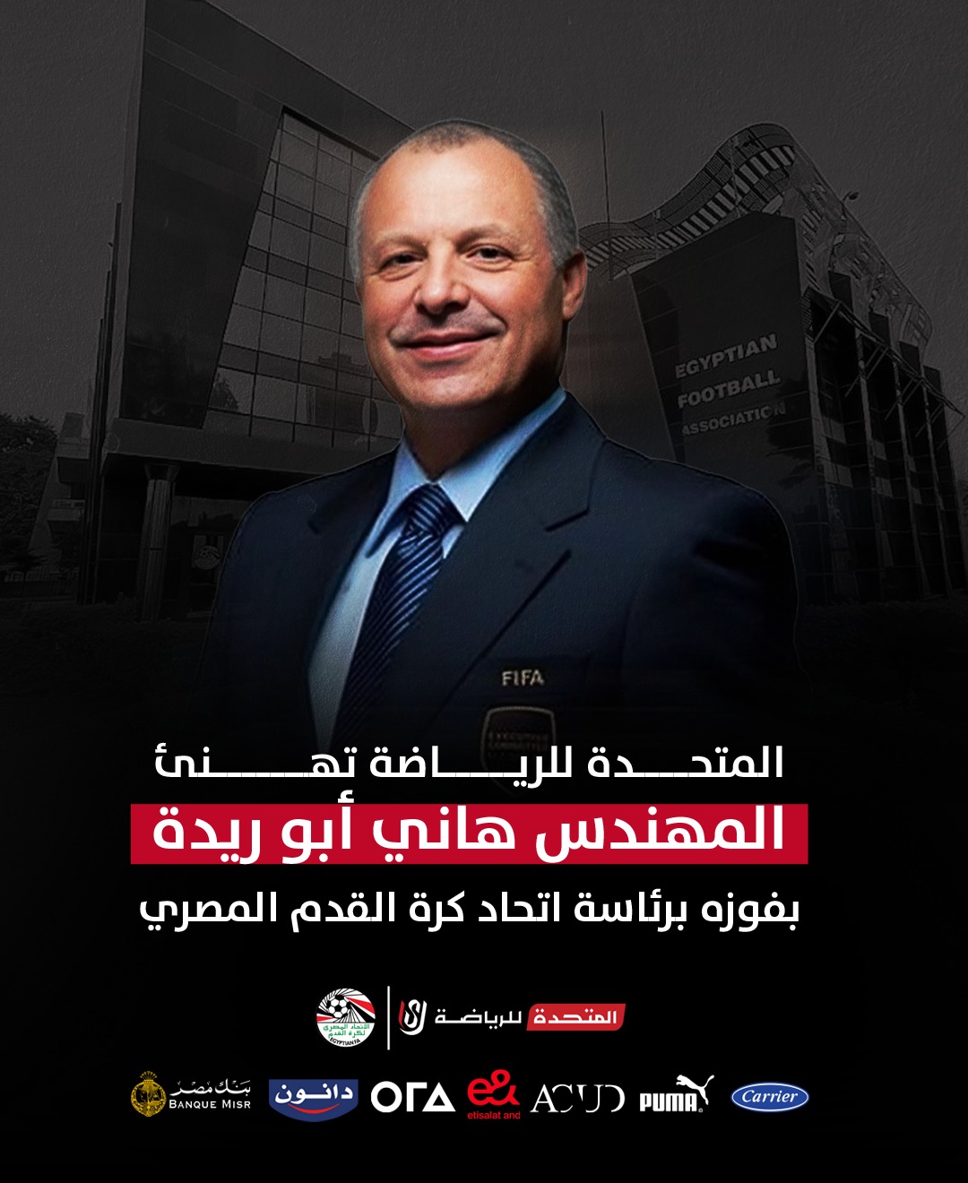 وجهت الشركة المتحدة للرياضة التهنئة للمهندس هاني أبو ريدة بعد توليه مهام رئاسة اتحاد كرة القدم حتى 2028.