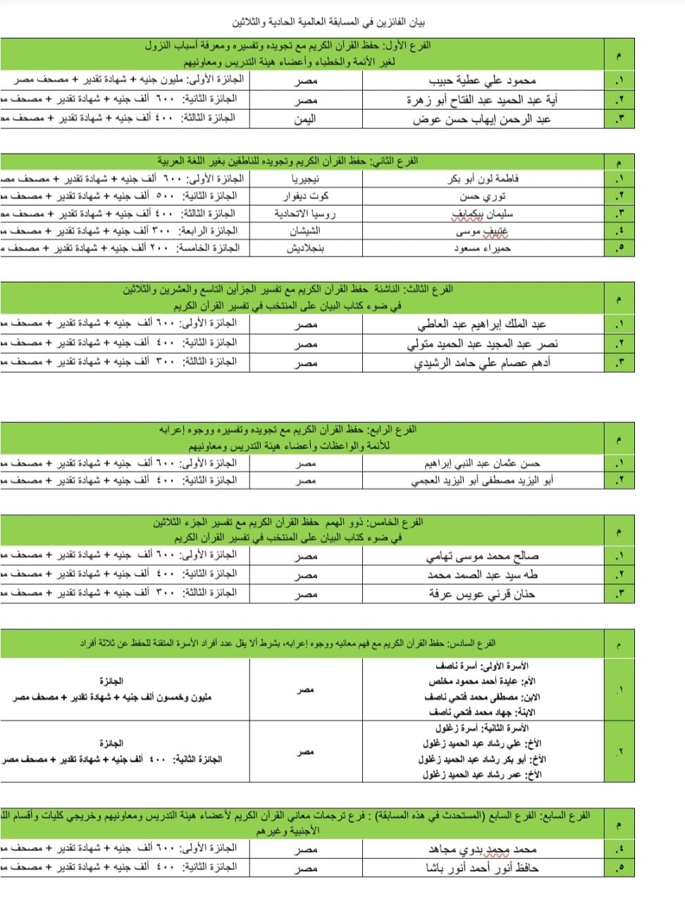 الفائزين بالمسابقة العالمية للقرآن الكريم