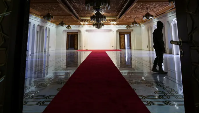 ويقع القصر الذي بني في عهد نظام حافظ الأسد عام 1990، وهو من تصميم مهندس ياباني، على تلة مطلة على العاصمة دمشق، الآن، بعد أن أخرجت قوات "تحرير الشام" اللصوص والناهبين بعد وضع حراسة مشددة على القاعة، يقف القصر فارغًا كنصب تذكاري للسلالة القاسية التي حكمت البلاد لأكثر من خمسة عقود.