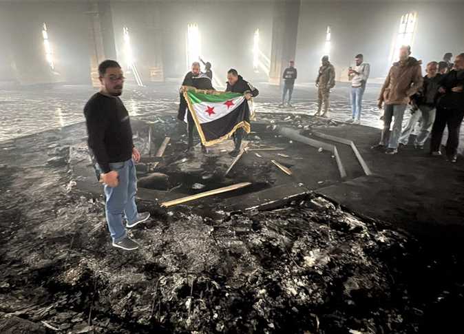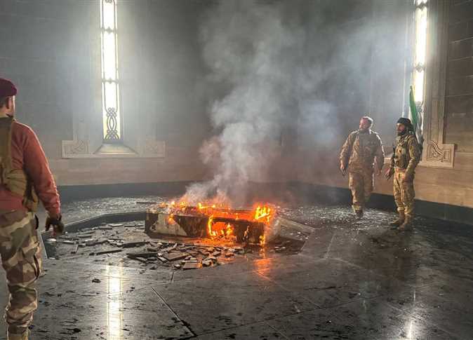 وأظهرت صور فرانس برس ألسنة النيران تتصاعد من مجسّم قبر عند زاوية قاعة فسيحة تزينها قناطر، بينما بدا مجسم قبر حافظ الأسد في وسطها مدمرا بالكامل بعد إحراقه.