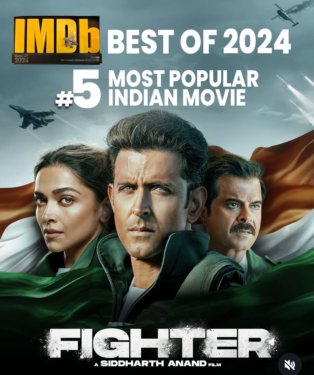 حظى الفيلم الهندي Fighter بطولة النجم هريثيك روشان بالمركز الخامس كأفضل فيلم هندي وفقا لموقع IMDB، وذلك بالرغم من عرض الفيلم في يناير الماضي وذلك يعد مرور 11 شهر على طرحه في دور العرض الهندية .