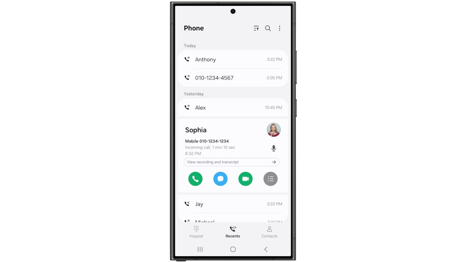 ومن أبرز ميزات ‘One UI 7’ ميزة النسخ التلقائي للمكالمات، التي تدعم أكثر من 20 لغة. وعند تفعيل تسجيل المكالمات، يتم نسخها تلقائياً لتمكين المستخدم من الرجوع إليها لاحقاً دون الحاجة إلى تدوين ملاحظات يدوياً. هذه الميزة تسهّل إدارة المكالمات وتزيد من الإنتاجية، خاصة في بيئات العمل.